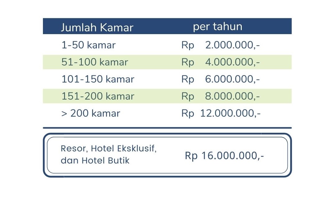 Berdasarkan Keputusan Menteri Hukum dan HAM RI No. HKI.2.OT.03.01-02 Tahun 2016, tarif Royalti Hotel dan Fasilitas Hotel